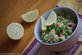 4. Oryginalnie powinno być z bulgur, ale ja zawsze robię z kuskusem. Uwielbiam tą sałatkę! Mieliśmy ją dziś zresztą na obiad :)
